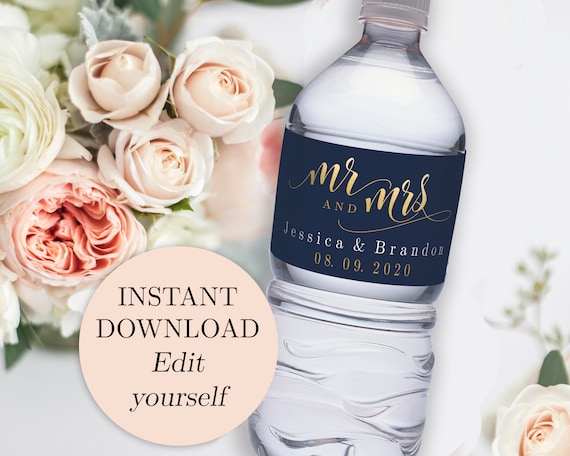 Editable Wedding Water Bottle Label Water Bottle Labels Etsy Uk
